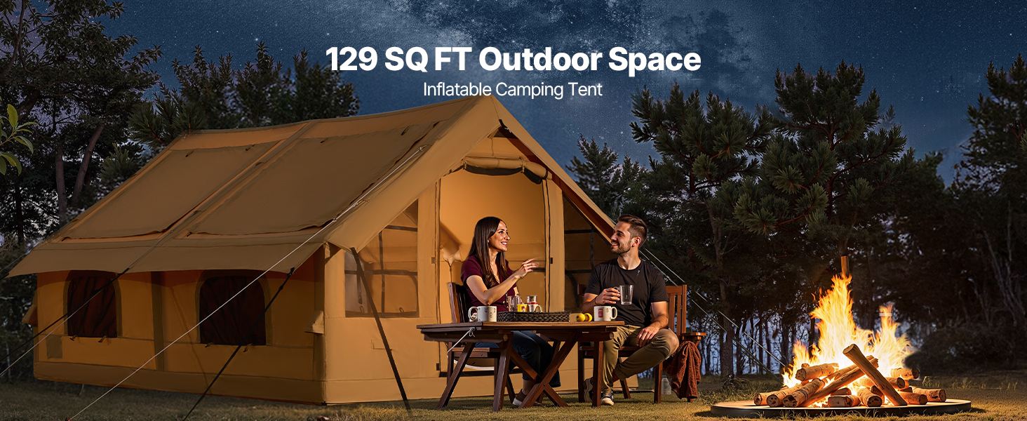 - Compact & Easy to Carry: This blow up camping tent is compact and portable. With the included storage bag, it’s easy to fold and transport. Durable zippers provide smooth operation and long-lasting performance, making it ideal for road trips, family camping, or spontaneous outdoor excursions.