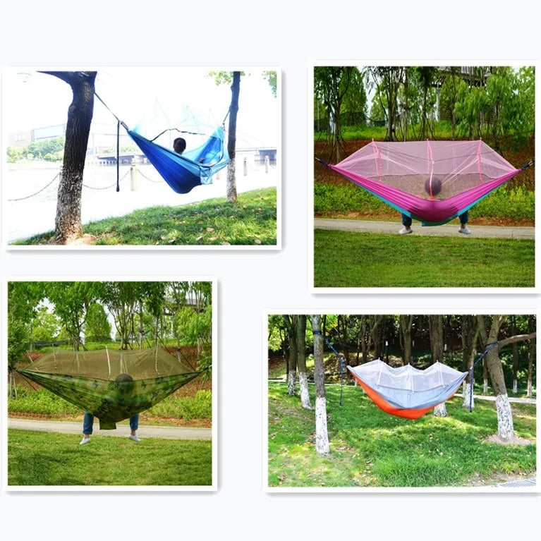 Relax, unwind, and enjoy nature with our Portable Outdoor Camping Hammock with Mosquito Net. It's the perfect blend of comfort, convenience, and functionality for your outdoor escapades!